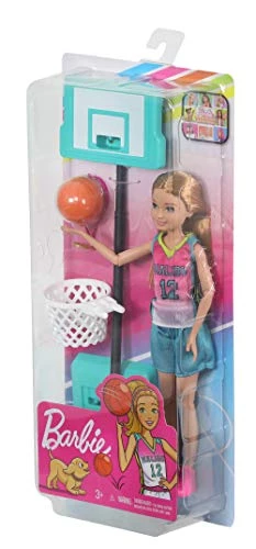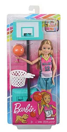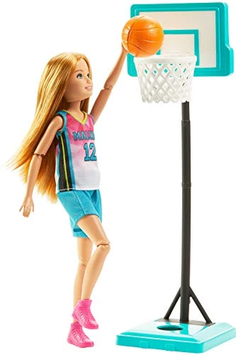 Details: Spark storytelling and sports-play with Barbie dolls inspired by Barbie Dreamhouse Adventures Barbie doll’s younger sister Stacie doll is game-ready in a colourful basketball jersey, shorts and cool, pink sneakers. A basketball hoop and ball accessory let young imaginations play out game time, and a gold medal accessory gives Stacie doll a winning look. With dolls inspired by Barbie Dreamhouse Adventures, imaginations can peek into the everyday lives of Barbie, her sisters and their friends as they embark on exciting adventures together. Aspiring athletes will love taking this basketball-themed doll on active adventures and exploring sports stories because when a girl plays with Barbie, she imagines everything she can become Collect all the Barbie Dreamhouse Adventures dolls and toys to recreate favourite moments or dream up adventures of your own. Each sold separately, subject to availability. Doll cannot stand alone. colours and decorations may vary.