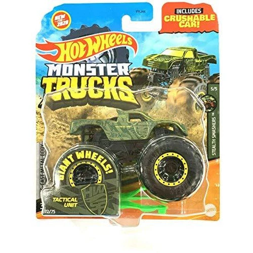Details: Hot Wheels Monster Trucks 1:64 Scale Diecast with crushable car- HWSF Hot Wheels Special Forces Tactical (Green)
