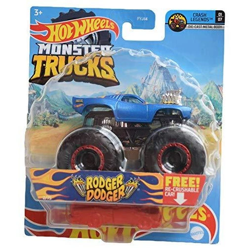 DieCast Hot Wheels Monster Trucks Rodger Dodger, Re-Crushable Car