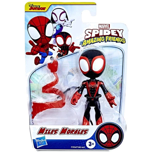 Team up with this Miles Morales figure inspired by Spidey And His Amazing Friends, the preschool Marvel animated show on Disney Junior. This 4-inch Miles Morales figure features 5 points of articulation. Pose your hero for any exciting adventure. Inspire bold, creative play with this Marvel Spidey and His Amazing Friends Miles Morales figure and web accessory that clips onto figure.