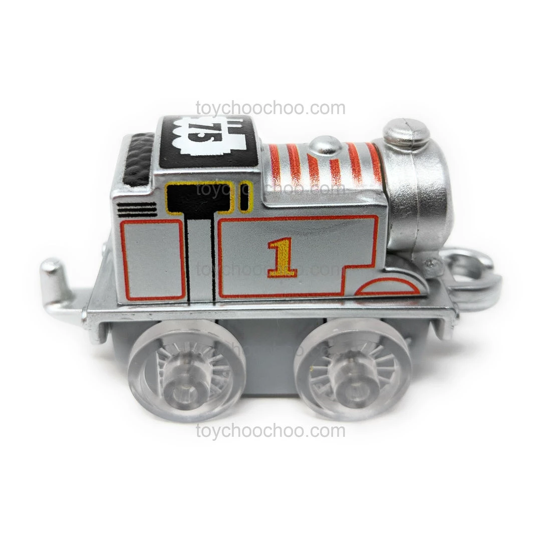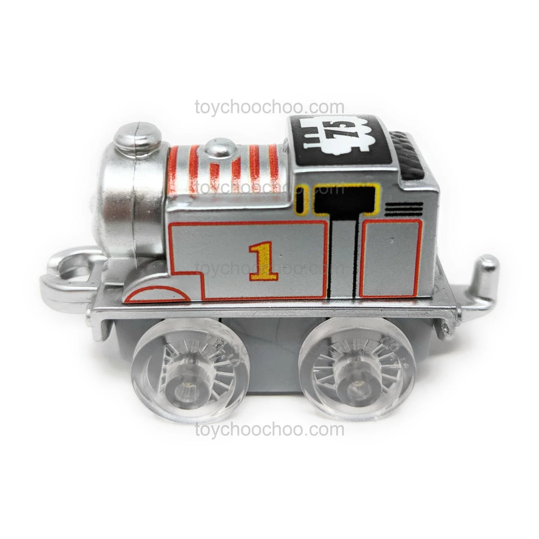βThomas & Friends MINISΒ special 75th anniversaryΒ theme chrome Thomas 2″ mini train for ages 3 and up. FeaturesΒ chrome styleΒ Thomas with 75 marking on top to celebrate the special occasion.