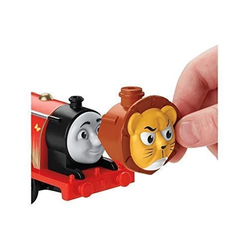 - Includes: James trackmaster train with Lion design, Lion mask, cargo cart, Lion animal and the animal cart (sticks in with peg-like structure to keep the animal from falling)