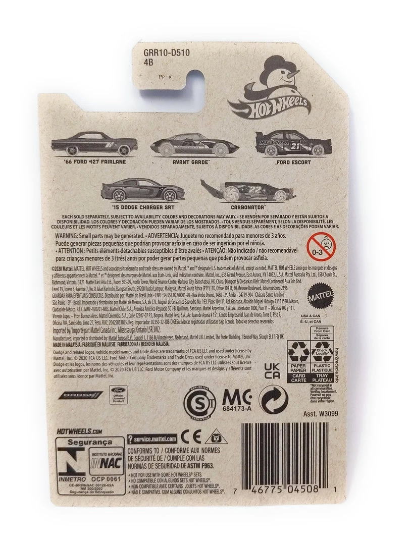 Hot Wheels Holiday Winter Hot Rods Ford Escort for 2021. Celebrate the winter holidays with this Ford Escort holiday car. This Ford Escort features a golden base with a red body and 2021 graphics, and gold accented white wheels.