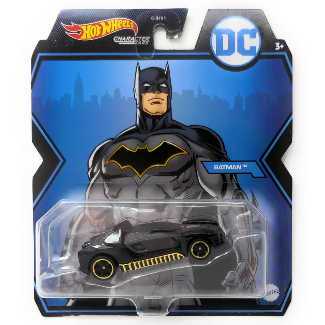 Hot Wheels Character Cars DC Batman1:64 scale vehicle for ages 3 and up. Find your favorite DC Universe Super Heroes and Super-Villains reimagined as premium Hot Wheels Character Cars! These Character Cars have realistic details and heroic inspired-by decos as dynamic as the powers and personalities they represent. With such authentic details, it is easy to see why these are a perfect gift for fans of all ages. Kids and collectors will be able to create epic adventures and complete their DC collections with DC Character Cars! Not for use with some Hot Wheels sets. Each sold separately, subject to availability. Colors and decorations may vary.