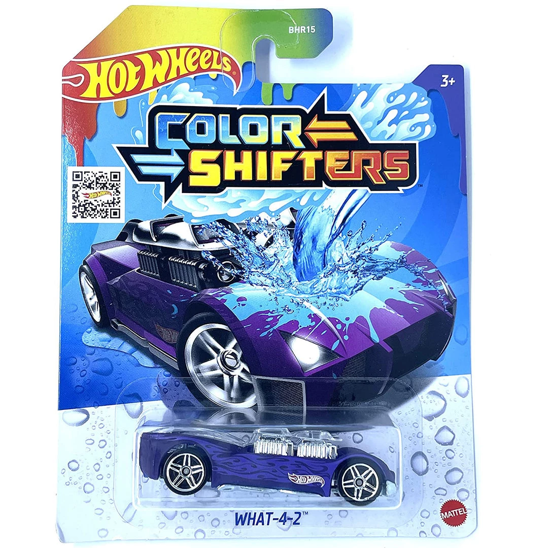 Hot Wheels Color Shifters What-4-2 1:64 Scale Vehicle. Now you can transform the color of your Hot Wheels cars with these Hot Wheels Color Shifters Vehicles. It’s simple — warm water changes your car’s color, and icy water changes the color back. Some of these toy vehicles even feature a multi-color transformation for even more fun. A wide variety of decorations and colors offer something cool for every car lover. Splash or dunk your Hot Wheels Color Shifters Vehicle in water and watch your ride transform before your very eyes. It’s like having two cars in one — you can hit the road, race the track and then change color to race again. Combine these Hot Wheels vehicles with other items from Hot Wheels, such as racing tracks, city playsets and more, which are sold separately, to maximize your fun. This toy is suitable for use by kids ages 3 and up.