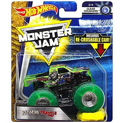 Hot Wheels Monster Jam BadNews Travels Fast Monster Truck with Clear Crusher Wheels and Re-Crushable Car