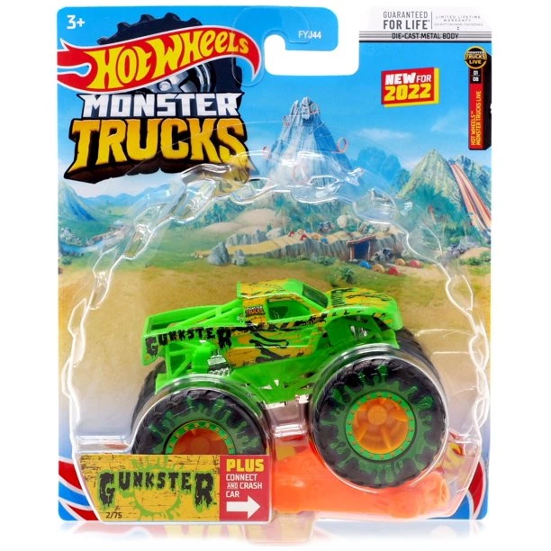 Hot Wheels Monster Trucks Gunkster with Connect & Crash Car. Hot Wheels Monster Truck Gunkster is a pickup with unpredictable slime and slam.