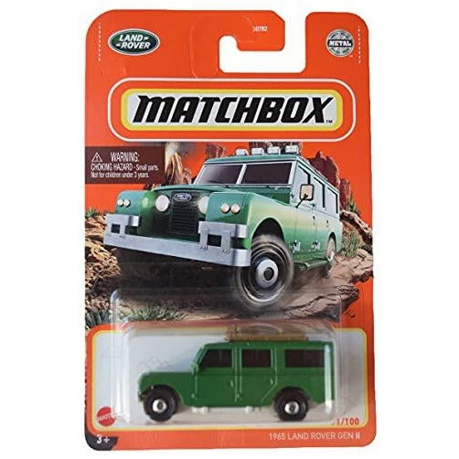 Matchbox 1965 Land Rover Gen II, Land Rover Series, 91/100, Green 1:65 Scale Vehicle. Kids and collectors alike will love the entire classic Matchbox vehicle line. With realistic details, authentic decos and real rolling wheels, it’s sure to send kids into any adventure they can imagine. Choose from an entire assortment of city cars, rescue vehicles, construction vehicles and off-road four wheelers. Collect them all! Each sold separately, subject to availability. Not for use with some Matchbox sets. Colors and decorations may vary.
