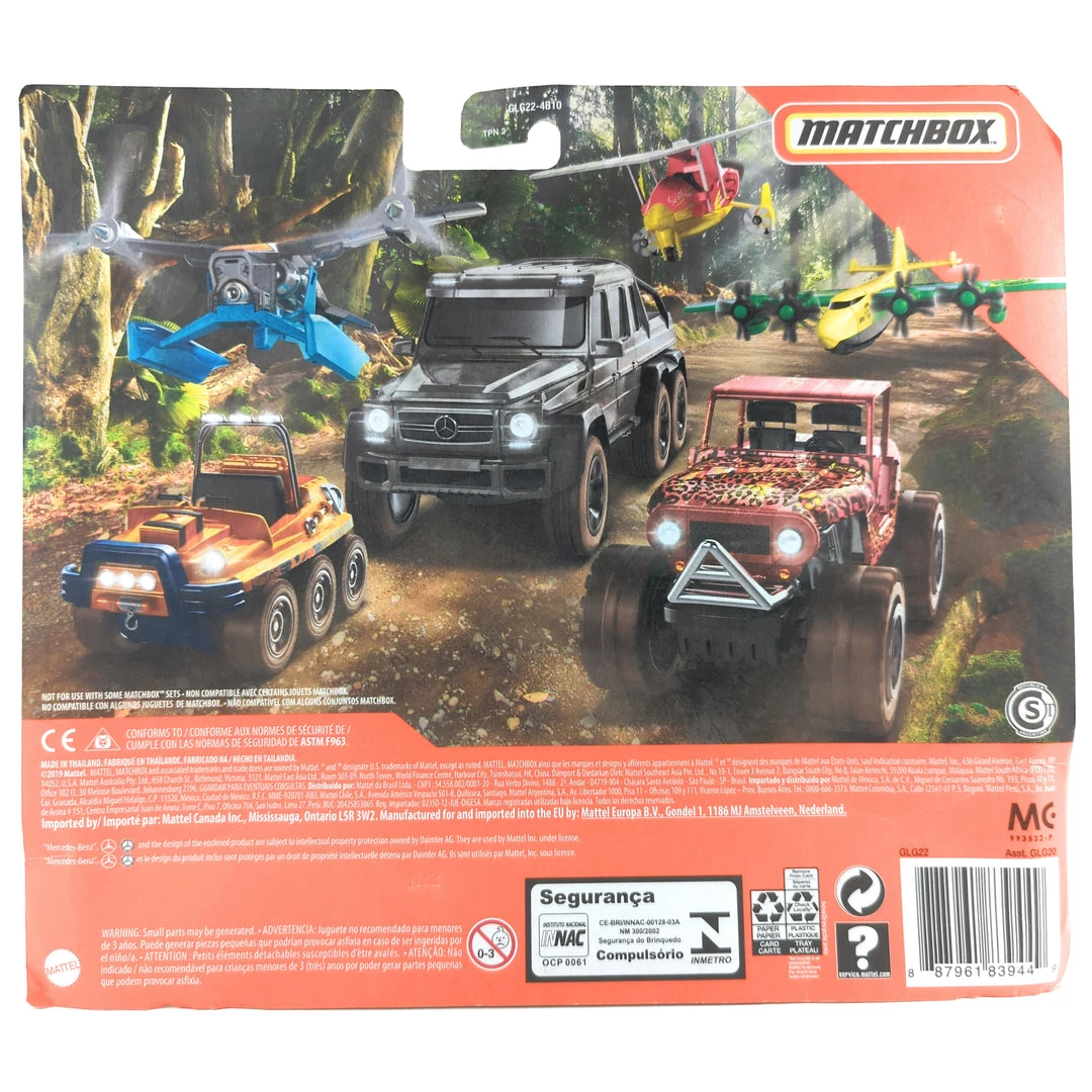 Matchbox Story-in-A-Box Mission Force Jungle Action Die-cast Vehicle 6-Pack for ages 3 and up. This diverse assortment of rugged Matchbox multipacks includes a large variety of vehicles from different segments like Sky Busters, Matchbox Real Working Rigs and Singles to create an exciting story-in-a-box experience. Each collection of vehicles is ready to tackle any task- completing the most complex of construction projects, coming to the rescue in an emergency, or exploring the vast reaches of outer space and boldly exploring exotic jungle terrain. This Mission Force includes six miniature vehicles suitable for jungle terrain.