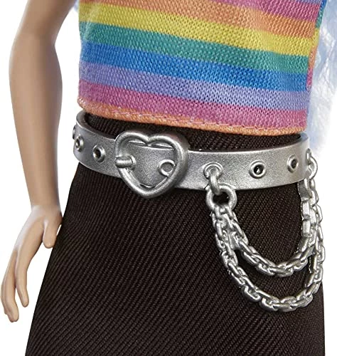 Details: Barbie and Ken Fashionistas celebrate diversity with fashion dolls that encourage real-world storytelling and open-ended dreams! With a wide variety of skin tones, eye colors, hair colors and textures, body types and fashions, the dolls are designed to reflect the world kids see today -and their attention-grabbing outfits help them stand out with personalities that pop! Use the reusable vinyl package to fill, carry and customize -store Barbie fashions and accessories, carry a doll anywhere, even decorate it and use for self-expression! Kids can collect Barbie dolls and accessories for infinite ways to play out stories, express their own style and discover that fashion is fun for everyone! Includes Barbie Fashionistas doll wearing fashions and accessories. Each sold separately, subject to availability. Barbie dolls cannot stand alone. Flat shoes fit dolls with articulated ankles or flat feet. Colors and decorations may vary.