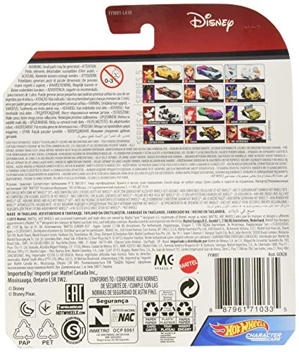 Details: Ever wonder what your favorite character would look like as a Hot Wheels vehicle? These cool wheels bring kids of all ages some of the best-loved characters – in car form! Speed off to new adventures in 1:64 scale vehicles designed to represent iconic characters from favorite entertainment properties including cartoon and game icons. Your favorite characters come in rich colors and decors as dynamic as their powers and personalities. * 1:64 scale cars are fun to play with or have display * Awesome Hot Wheels character cars capture the essence of Disney and Disney Pixar characters. * Perfect gift for Hot Wheels and Disney fans! * Not for use with some Hot Wheels sets. * For ages 3+ years
