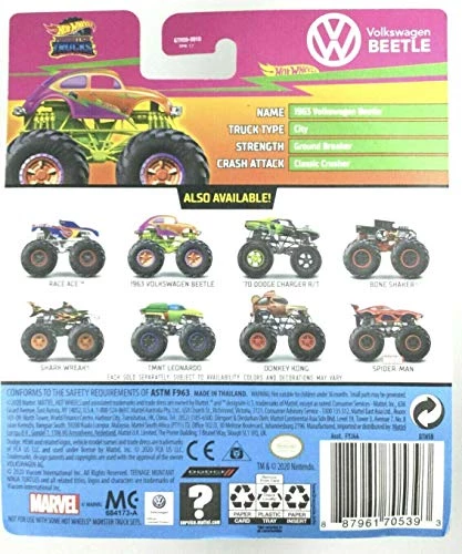 Details: Hot Wheels 2021 Die-Cast Monster Trucks VW Beetle 21/75 with Re-Crushable Car – Neon Shockers 03/07