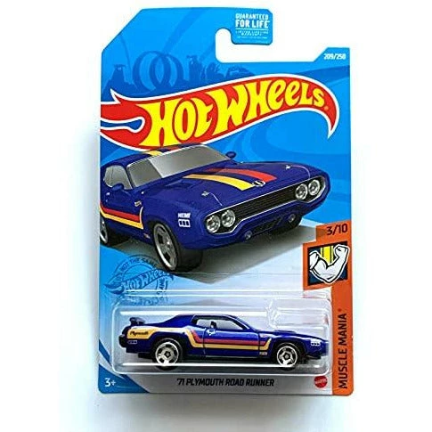 Details: Hot Wheels ’71 Plymouth Road Runner, Muscle Mania 3/10 [blue] 209/250