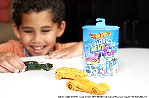 Details: The Hot Wheels Color Reveal 2 Pack of vehicles is loaded with awesome surprises! Inside the barrel drum are two 1:64 scale Hot Wheels Color Reveal cars covered in special Color Reveal coating. For the initial reveal, fill the drum with water and swirl each car around in it until the water changes color, the pull the car out -the sweet decos hiding underneath are exposed! Want to change its appearance again Fill the drum with cold water and dunk each car in for yet another awesome transformation! Change it back by dunking it in warm water! Repeat this over and over again alternating between warm or cold water. It’s like having two cars in one! The barrel drum serves as a Hot Wheels dunk tank, and it’s also perfect for storage! Each two-Pack is sold separately, subject to availability. Colors and decorations may vary.