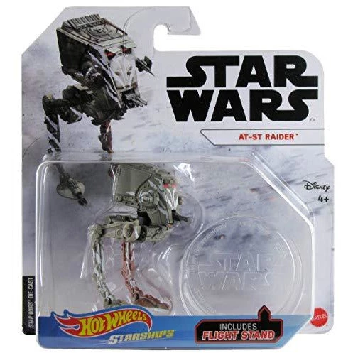 Details: Hot Wheels Star Wars Starships Mandalorian AT-ST Raider. Includes display stand.