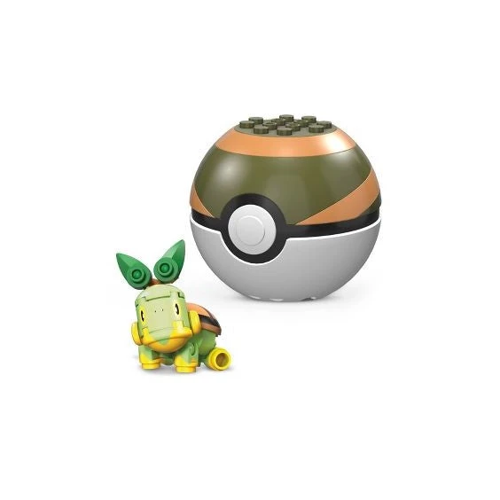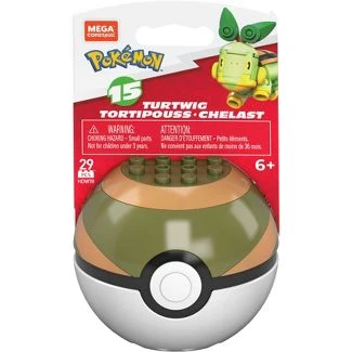 Mega Construx Pokemon Series 15 Turtwig 29 Pcs. Buildable and poseable Turtwig figure building set with pronged Nest Ball for figure display. Pokémon Trainers will come out of their shells after battling this buildable Turtwig. Open the Nest Ball to build your very own Turtwig then pose it in a number of stances to face opponents with grass attacks. Discover even more Pokémon building sets when you build all 6 in the series, each sold separately.