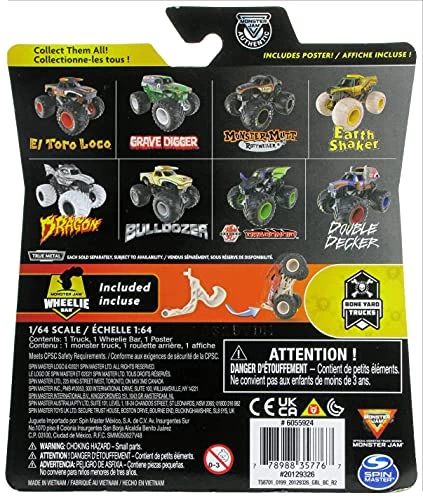 - OFFICIAL MONSTER JAM TRUCK WITH WHEELIE BAR: Dominate everything in your way with the all-new, official Monster Jam 1:64 scale monster truck with a detachable wheelie bar! Pop into wheelies or stoppies!