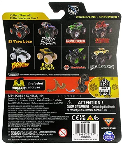 - Monster Jam 2021 Spin Master 1:64 Diecast Series 17 Monster Truck with Wheelie Bar: Ruff Crowd Series Monster Mutt Rottweiler
