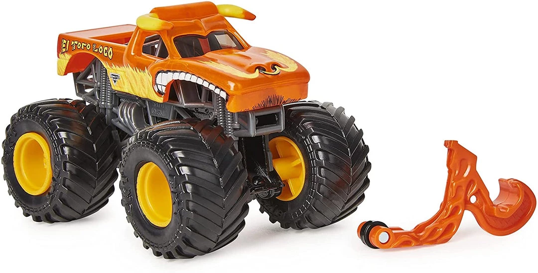 Monster Jam El Toro Loco with Wheelie Bar 1:64 Scale Truck Series 20 Shear Madness for ages 3 and up. Introducing the 1:64 scale die-cast Monster Jam El Toro Loco monster truck! This lean, mean, Monster Jam machine features awesome graphics and details. With BKT Tires, stylized rims and chassis, this El Toro Loco monster truck embodies the style and swagger of its real-life counterpart! PLUS, this 1:64 scale truck comes complete with a driver molded into the driver’s seat and a detachable wheelie bar! Attach the bar to the front or the back of your truck and pop into wheelies or stoppies, just like you’ve seen in the live shows! This 1:64 scale die-cast Monster Jam truck is just like the real thing – only fun size! And now with more trucks to collect than ever before (each sold separately), it’s easy to keep track of your collection with the exclusive collector poster! Start building your Monster Jam collection today!