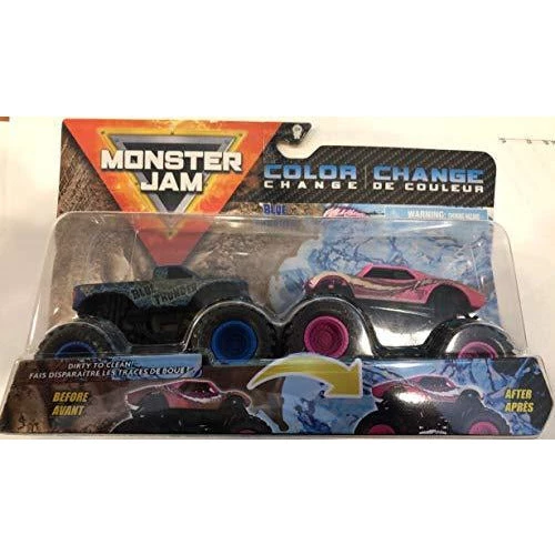 - WATCH THE COLOR CHANGE: Dunk each of the 2-Pack’s Monster Jam trucks in warm water to watch the dirt stains fade away, revealing clean trucks! Splash with cold water to make them dirty again!