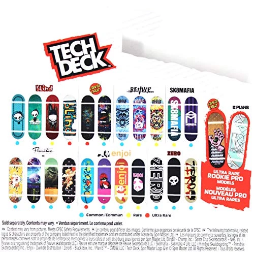 Tech Deck single fingerboard pack includes 1 complete mini skateboard deck and accessories.