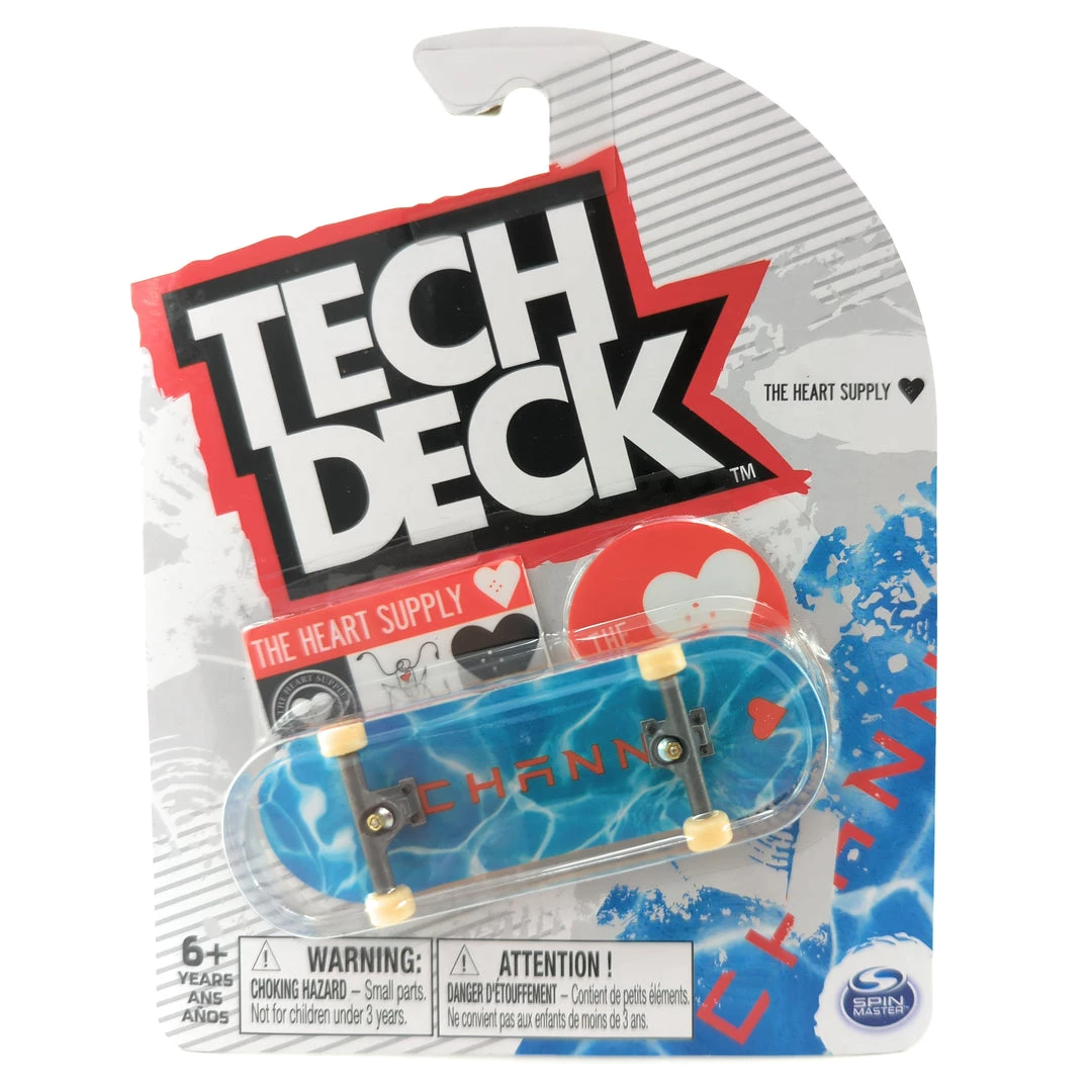 Tech Deck The Heart Supply Skateboards Chris Chann Water 2022 single fingerboard pack includes 1 complete mini skateboard deck and stickers. Fingerboard is approximately 96mm long. For ages 6 and up.