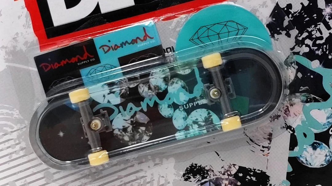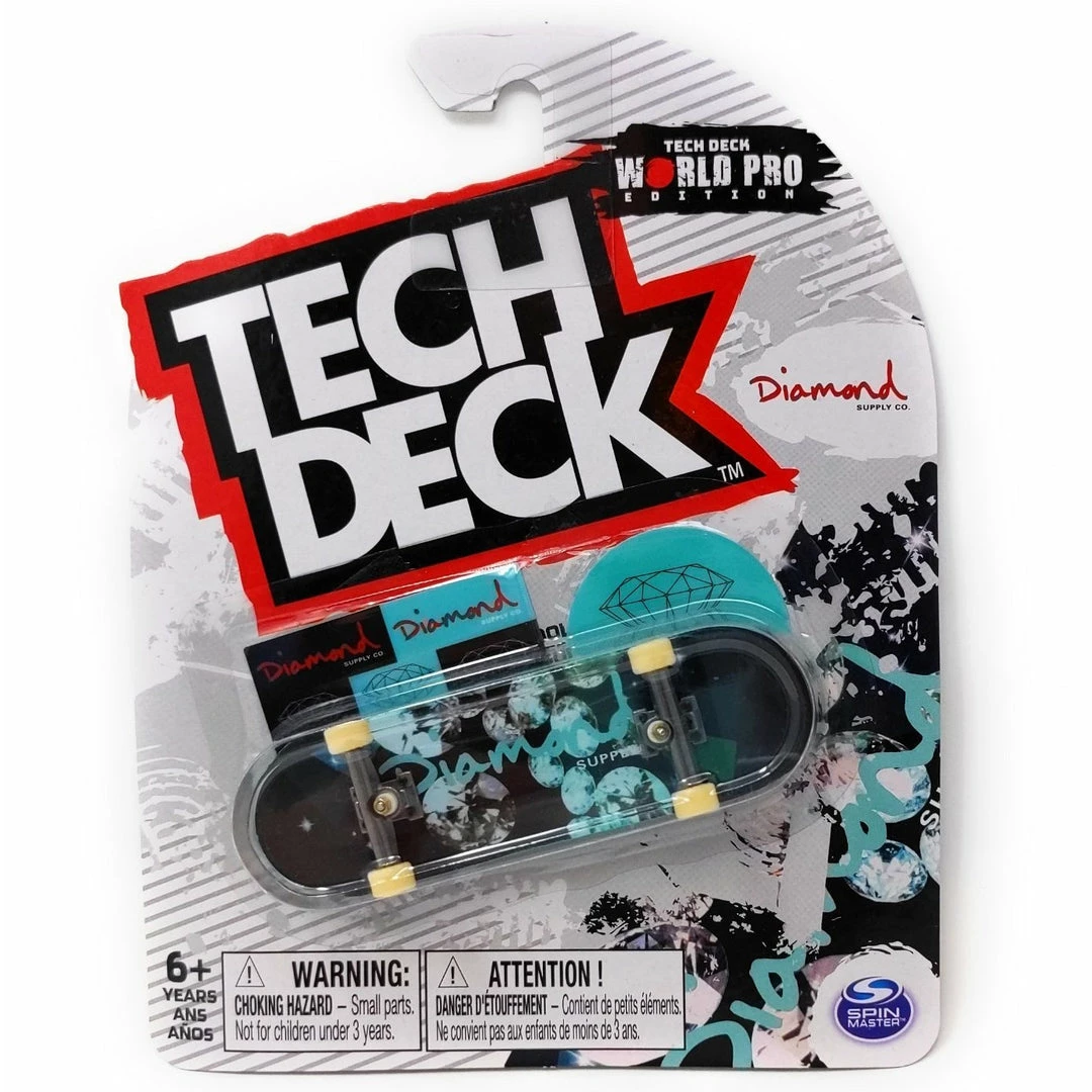 Tech Deck World Pro Edition Diamond Supply Co OG Script Blue Diamonds single fingerboard pack includes 1 complete mini skateboard deck and accessories. Fingerboard is approximately 96mm long. For ages 6 and up.