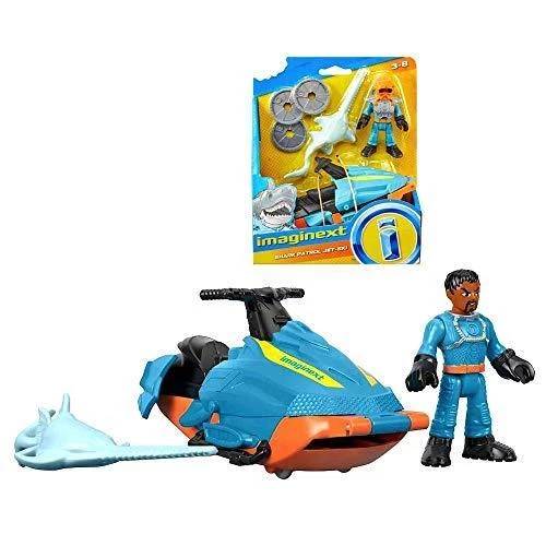Details: Who watches the sea to keep the coast safe? The Shark Patrol, of course! When a razor head shark gets too close, the scuba diver races into action with the Shark Patrol Jet-Ski! Lift the hood to load the projectile discs, then push the seat to launch! Kids can dive into thrilling ocean adventures with this action-Packed Imaginext figure pack. Imaginext Imagine What’s Next! Ages 3 and up