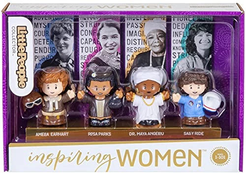 Details: The Little People Collectorâ„¢ Inspiring Womenâ„¢ figure set from Fisher-Price® celebrates four American women who changed the world through their strength, courage, intelligence and determination. The boundary-breaking work of Dr. Maya Angelou, Amelia Earhart, Rosa Parks and Sally Ride, left lasting impressions in history and paved the way for other women to pursue their dreams. This must-have figure set features each pioneering woman brought down to Little People® toy size and comes in a specially designed, gift-ready box that will look great on any collector’s shelf.