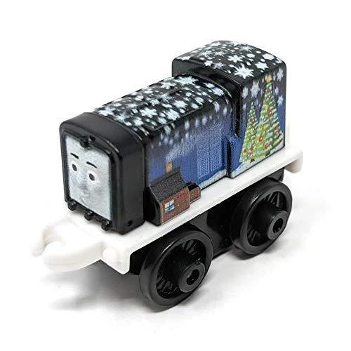 Details: Christmas Diesel 2 inch mini train Holiday themed with Christmas scene of Christmas trees, snow and a log cabin.