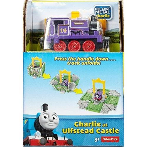 Details: A starter set in a highly portable “cube” form. Simply press the top handle to automatically unfold the set into a full loop of track! Move Charlie along the track and through Ulfstead Castle. To fold the playset back up, just lift the panels and snap them onto the latches on the side of the handle. You can also open the doors and drive through any “cube station” when it is closed. Use the handle to carry your cube station sets wherever you go! Engine stores inside.