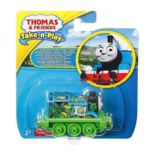 Details: Thomas & Friends Take-n-Play Jungle Adventure Thomas is a durable die-cast metal engine. Thomas is decorated in a jungle theme, ready for a wild adventure! Perfect for Take-n-Play Portable Fold-Out Playsets (sold separately and subject to availability).