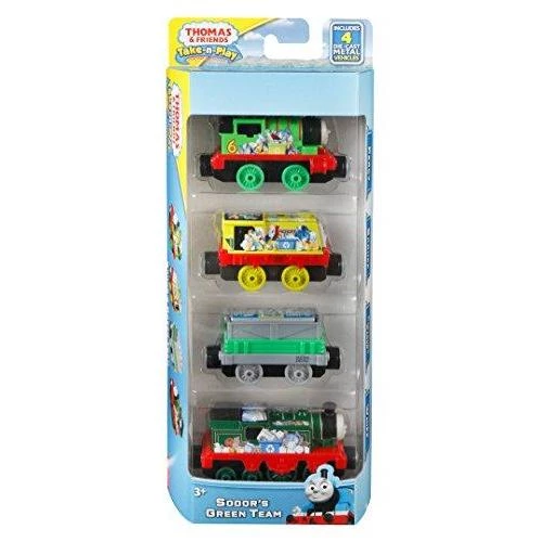 Details: A Take-n-Play multi-Pack that lets kids have adventures with their favorite characters from Fisher-Price Thomas & Friends ! The Sodor Green Team includes recycling Percy, Whiff, Scruff, and a flipping cargo car. Pretend to send the Sodor Green Team off on important environmental missions! The engines can be connected to each other and connect to other Take-n-Play train engines and tenders (each sold separately and subject to availability). Catch Thomas & Friends episodes weekdays on the Nick Jr. Channel. Check your local listings for the latest information.
