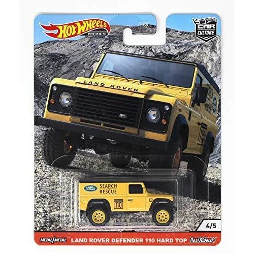 Details: 2020 Hot Wheels Premium Car Culture Land Rover Defender 110 Hard Top Wild Terrain 4/5 Search and Rescue 1:64 scale diecast vehicle for ages 3 and up.