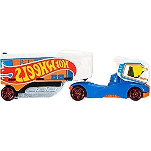 Hot Wheels Track Stars Semi & Trailer – Haulin’ Heat Hot Wheels Track Stars are ready to race! Designed to work with Hot Wheels Haulin’ Heat, Steel Power Blue and White these die-cast metal and plastic rigs can speed down the track, go through loops and more! Kids will want to collect them all and create new combinations to build the ultimate hauler as the cab and trailer are interchangeable with other trucks in the assortment. Featuring brilliant colours with big rig detailing, they’re ready to hit the open road! Ages: 3+ years up