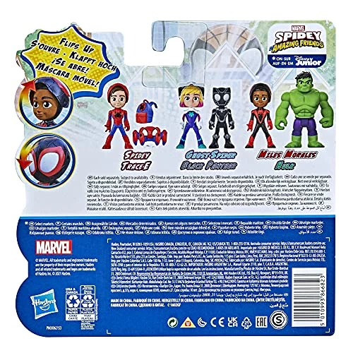 Details: It’s Spidey Time! Marvel’s Spidey and His Amazing Friends follows the adventures of the Super Hero Spidey and all his heroic friends! Spidey, Ghost-Spider, and Miles Morales: Spider-Man all have super spider-powers: spider-sense, super-strength, wall-crawling, and more! Each brings something unique to their crime-fighting adventures, making them even stronger when they’re working together as the amazing Spider Team! But even the best team sometimes needs a helping handβthat’s when it’s good to have allies like Ms. Marvel, Black Panther, and even Hulk! It’s hard being a Super Hero, but it helps when you have such Amazing Friends! Stopping bad guys and crawling wallsβTeam Spidey does it all! Copyright MARVEL. All trademarks and registered trademarks are the property of their respective owners. Hasbro and all related terms are trademarks of Hasbro.