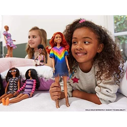 Details: Barbie Fashionistas dolls celebrate diversity -their unique looks and fashions encourage real-world storytelling and open-ended dreams. With a wide variety of skin tones, eye colors, hair colors and textures, body types and fashions, the dolls are designed to reflect the world kids see today. Kids can collect them for infinite ways to play out stories, express their own style and discover Barbie! Includes Barbie Fashionistas doll wearing fashions and accessories. Each sold separately, subject to availability. Barbie dolls cannot stand alone. Flat shoes fit dolls with articulated ankles or flat feet. Colors and decorations may vary.