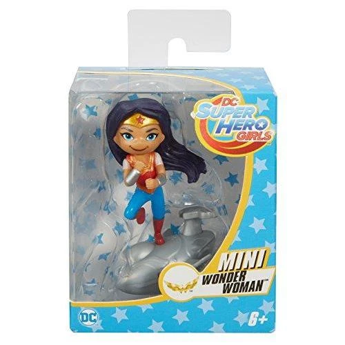 Details: The DC Super Hero Girls collectible figures are adorably mini in size, but powerfully huge in personality! Each vinyl figure is inspired by a favorite teen of Super Hero High. Unique stands showcase their powers and personalities even more. The ultra-cute DC Super Hero Girls minis hold dynamic poses that capture a moment of action and wear looks that feature Super Hero elements fans will recognize. Wonder Woman mini figure has on her signature red and blue detailed with her tiara, gauntlets, belt and boots. The natural born leader stands boldly atop her Invisible Jet. Kids will love finding their own unique abilities along with these Super Hero students! Find your favorite DC Super Hero Girls figure or collect them all (each sold separately, subject to availability). Includes vinyl collectible figure and stand. Colors and decorations may vary.