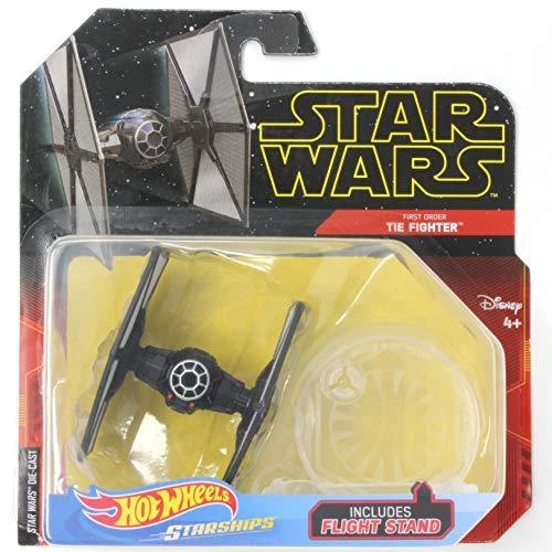 Details: Hot Wheels Starships First Order Tie Fighter with display flight stand.
