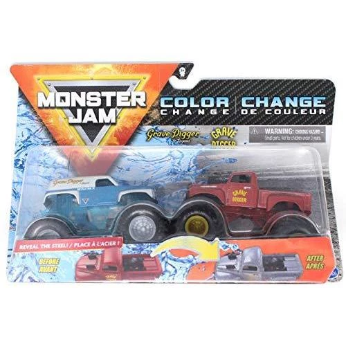 Details: All New for 2020 MonsterJam Color Change Grave Digger The Legend and retro red Grave Digger 1/64 scale TRUE METAL monster trucks for 3 and up.