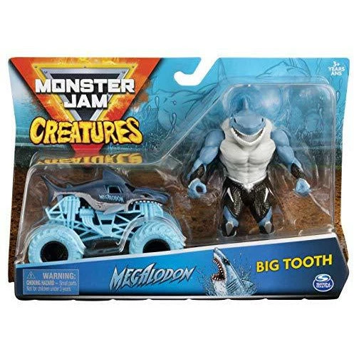 Details: MonsterJam Creatures 2 pack Megalodon and Big Tooth Shark Action Figure